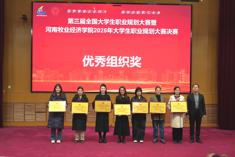 12月18日下午,第三届全国大学生职业生涯规划大赛河南牧业经济学院总决赛在英才校区学术报告厅落下帷幕,我院24级网络与新媒体(网络传播)02班刘雅楠荣获成长赛道一等奖,23级知识产权01班孙金琳、23知识产权02班鲁艺博获得成长赛道三等奖,我院获得优秀组织奖。