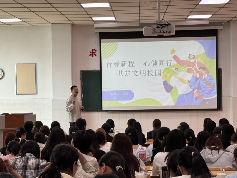 为帮助新生更好地适应大学生活,重视身心健康,积极参与到文明校园的建设中来,2025年9月29日上午9点在W309教室举行了文法学院2025级新生入学教育系列活动第五讲——青春新程 心健同行 共筑文明校园,本次讲座由文法学院团委副书记王兆北主讲,2025级全体新生参加。