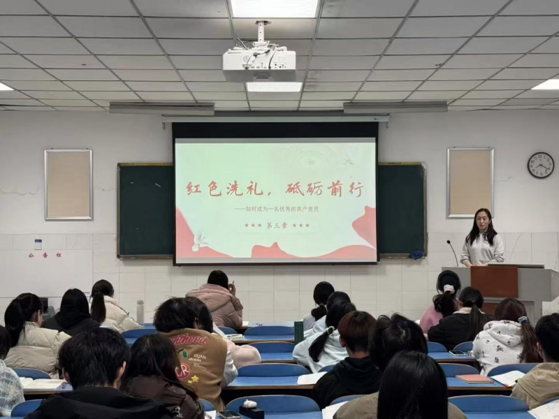 课程伊始,买菁菁以“你的入党动机是什么?”这一问题为切入点,引导入党积极分子深入思考合格党员的标准。她结合校内优秀学生的事迹,生动阐释了“端正入党动机”的重要性,帮助积极分子明确入党的初心与目标。接着,她引用“守正出奇”这一成语,直观阐明树立正确价值观对成长为优秀党员的关键作用,并鼓励积极分子参与各类赛事,以优秀学生为榜样,对标看齐、提升自我。最后,围绕“如何端正入党动机、成长为合格党员”这一核心问题,买菁菁从“四个角色”定位展开具体阐释:第一,要当好正确舆论的引导者,站稳思想立场,传递正向声音,不盲目跟风;第二,要当好优良学风的倡导者,发挥表率作用,营造浓厚的学习氛围;第三,要当好班级发展的践行者,积极投身班级事务,贡献智慧与力量;第四,要当好志愿服务的实践者,主动参与志愿服务,践行初心与使命。