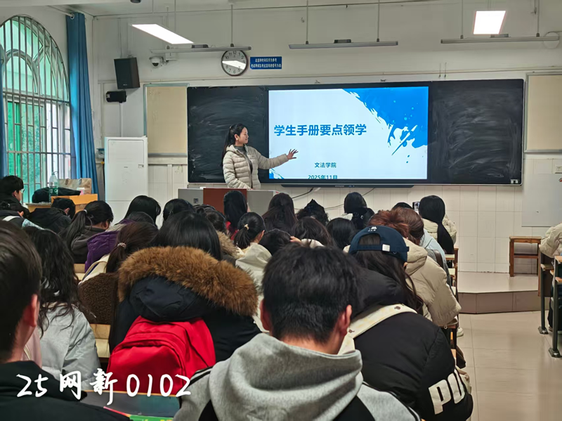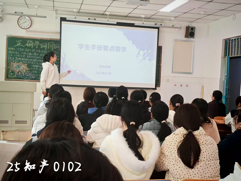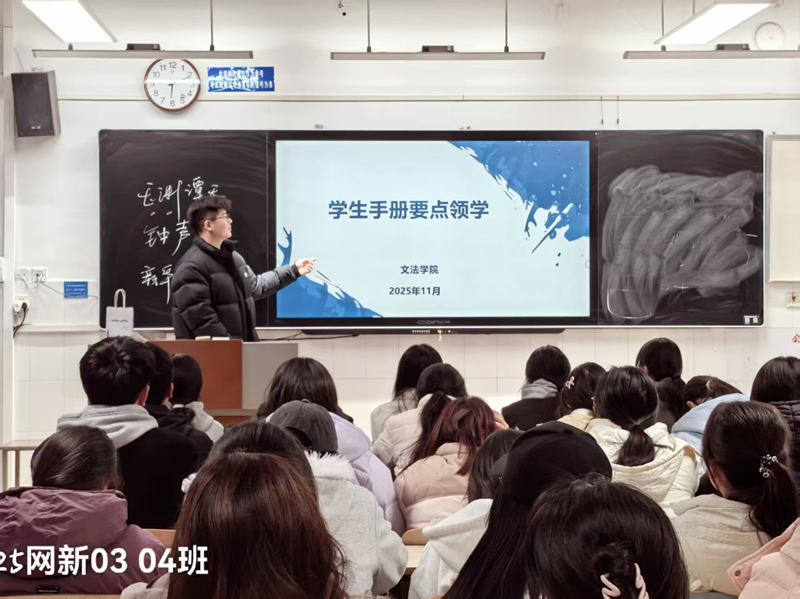 为助力大一新生尽快融入大学生活,熟悉学校的各项规章制度,养成良好的行为习惯,2025年11月底-12月中旬,文法学院组织2025级新生开展《学生手册》学习活动,各班级由班委领学,为大学生活筑牢了规则之基。