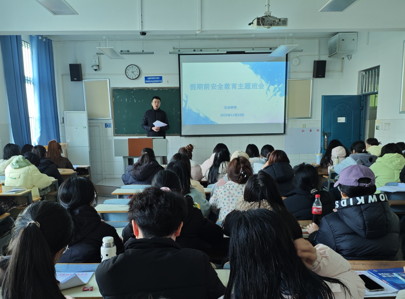 为切实做好学生寒假前安全教育工作,提高学生自身安全意识,确保学生度过一个安全稳定的假期,12月25-26日,文法学院各班辅导员、班主任深入班级,召开假期前安全教育主题班会。