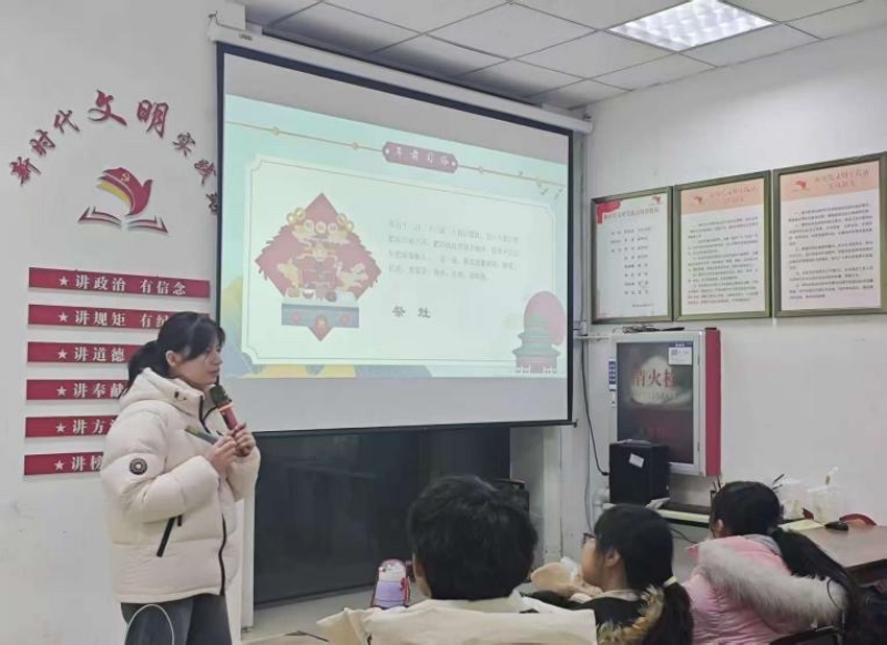 24网络媒体(网络传播)02尹誉同学参与二七区淮河路街道盛世社区珺彧学堂公益服务队。经过分工,她参与课程内容讲解和宣传活动。在课堂中,她给小朋友们进行相关的课程学习和社会研学实践活动,在课堂的讲解中,她逐步探索与同学们相契合的内容,讲述中华优秀传统文化的由来和意义,让小朋友们感受到中华文化的博大精深与无穷魅力,培养他们良好的学习兴趣。