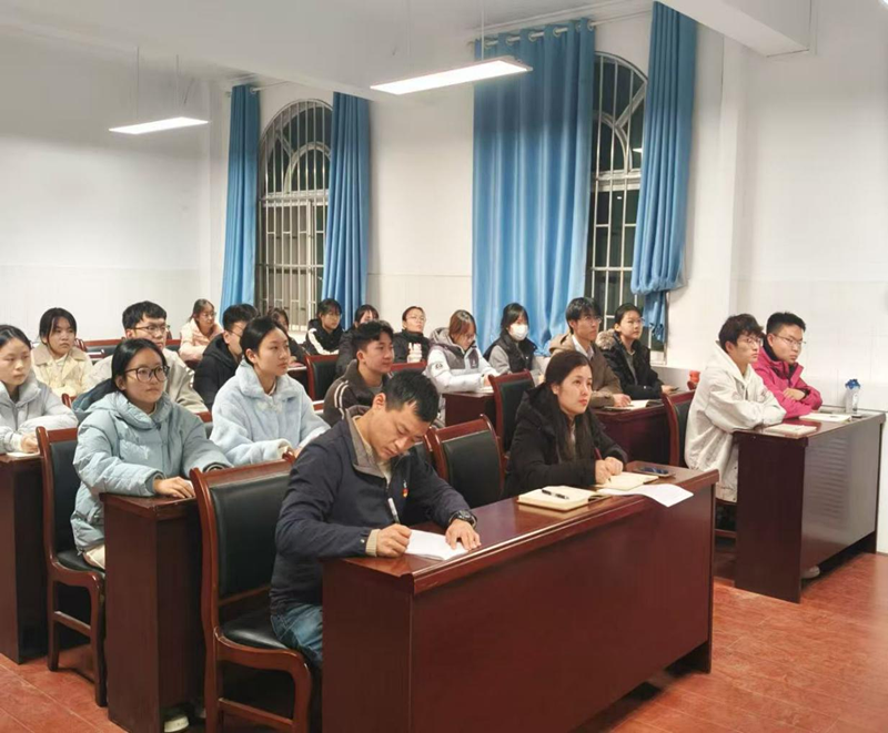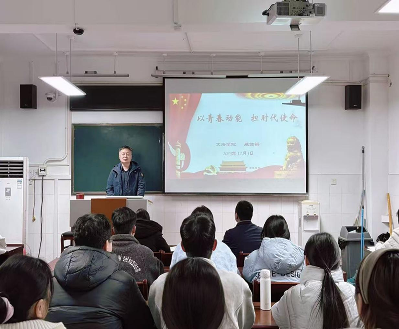 为深入学习党的二十届四中全会精神,全面推进中国式现代化伟大事业,文法学院于2025年12月3日晚上6:45在b106开展文法学院2025年青马工程第一讲——“以青春动能 担时代重任”专题宣讲会,本次宣讲由文法学院党委书记姚喆祺主讲,院团委副书记付慧婕、王兆北以及本期“青马工程”全体学员参加。